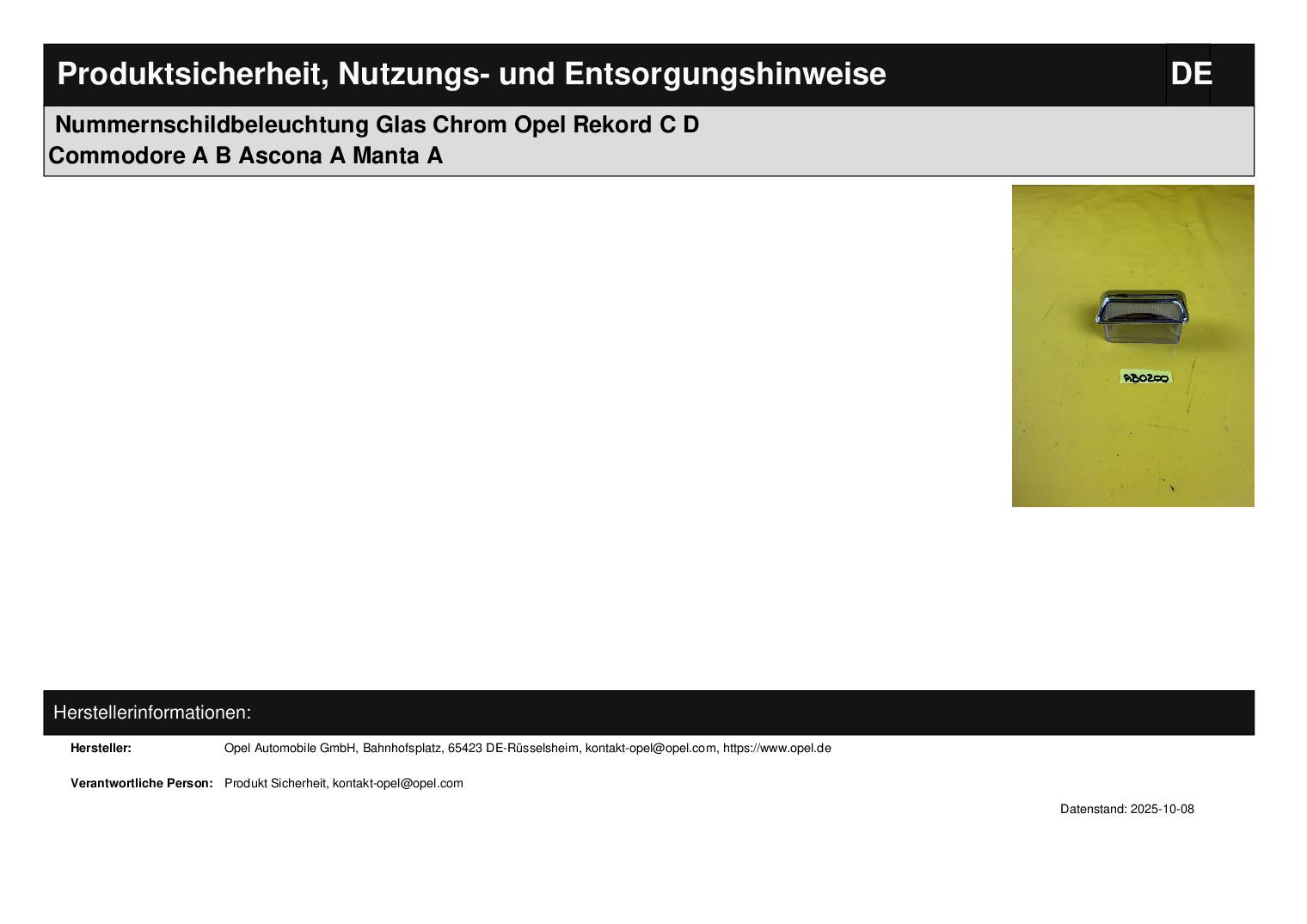 Nummernschildbeleuchtung Glas Chrom Opel Rekord C D Commodore A B Ascona A Manta A