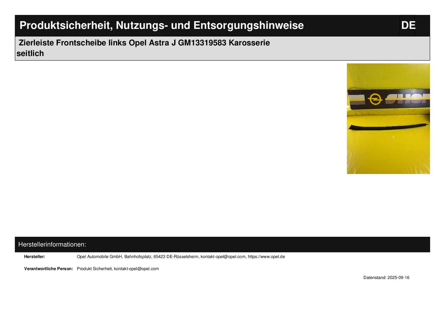 - Artikelzustand : NEU + original Opel Ersatzteil